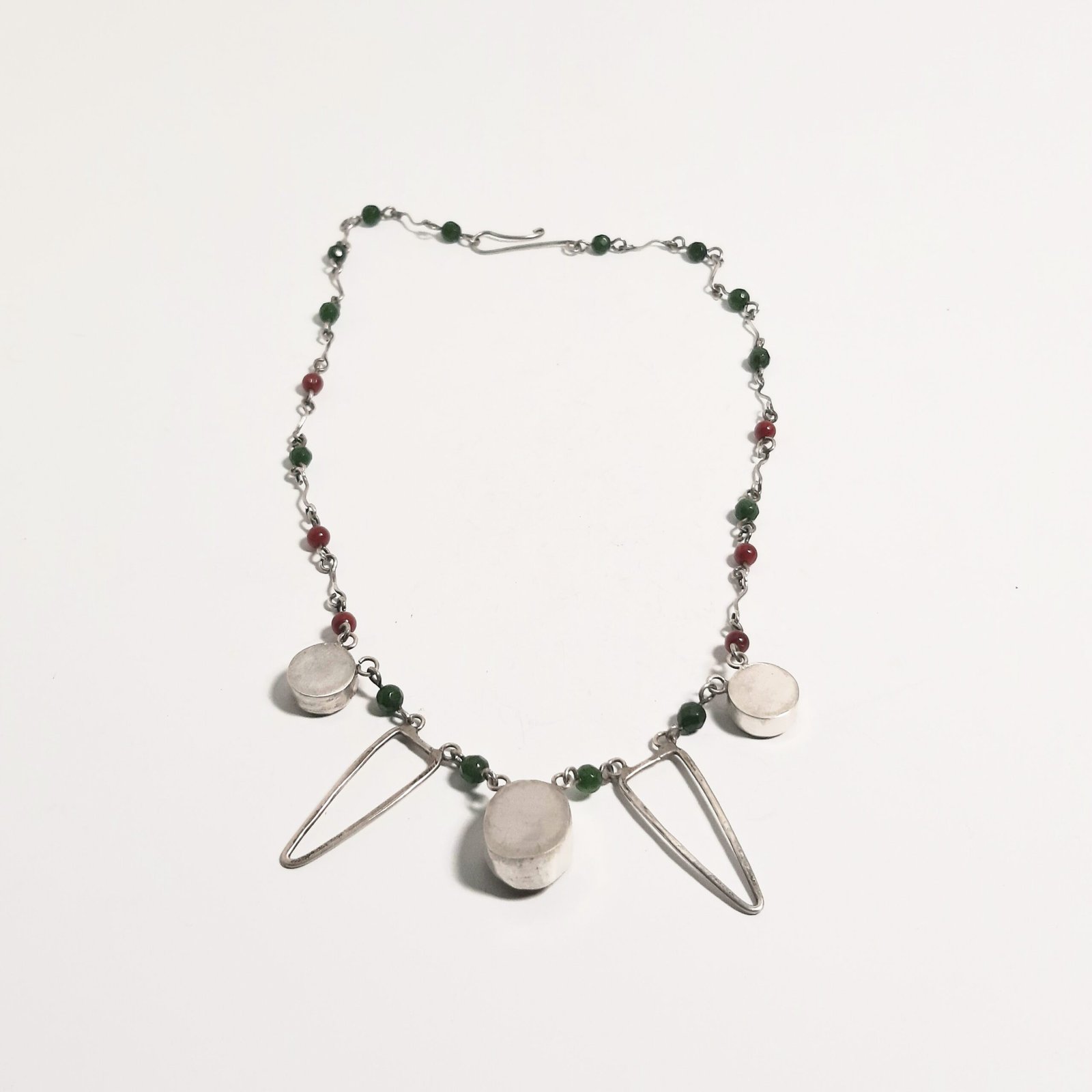 Ceyt Coral Stone Triangle Necklace This elegant triangle necklace, completely handmade, draws attention with the energetic red of the ceyt coral stone. It is produced without any technology, only with mastery and care. Each piece is unique and distinctive. An ideal choice to complete your style.