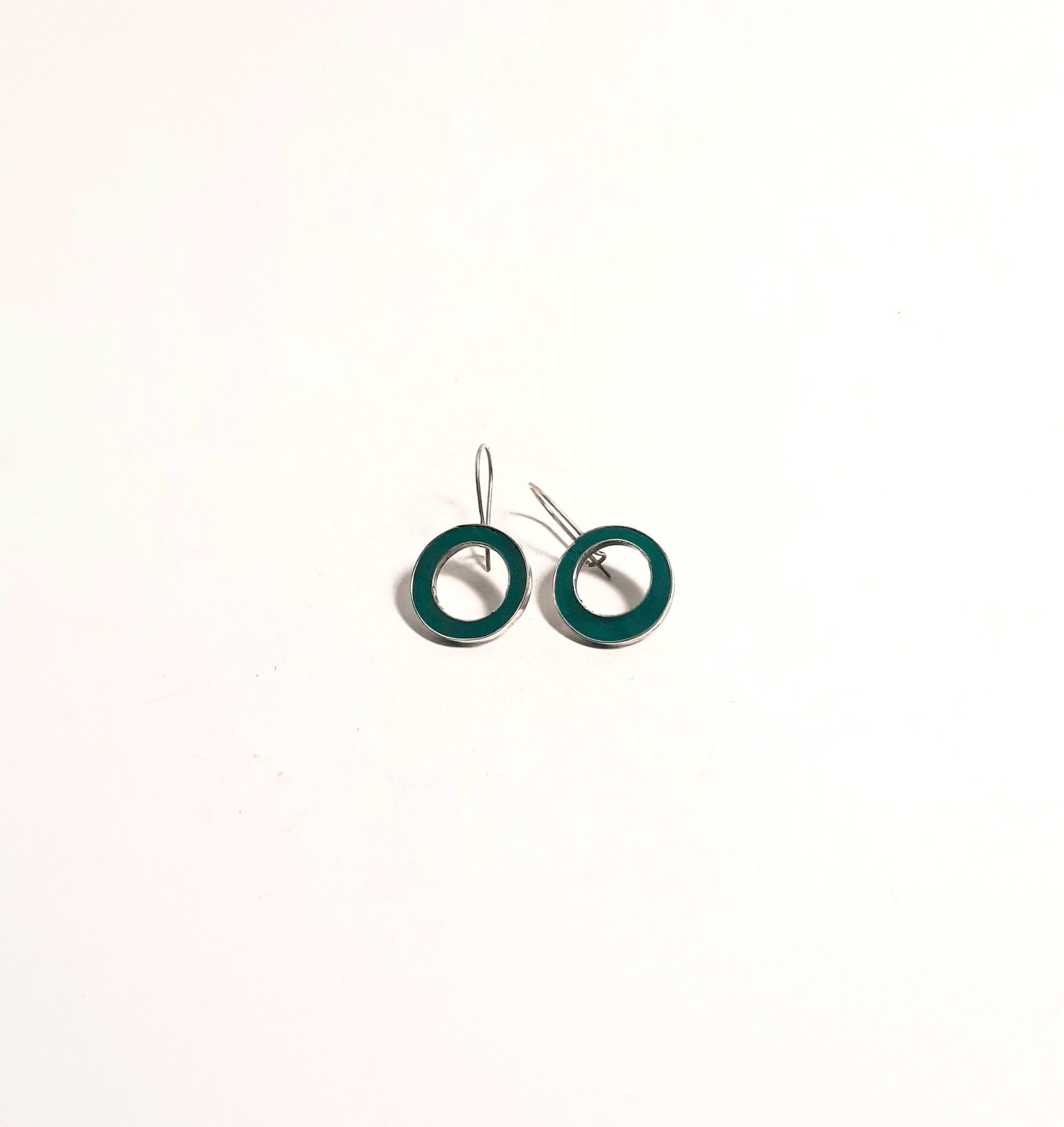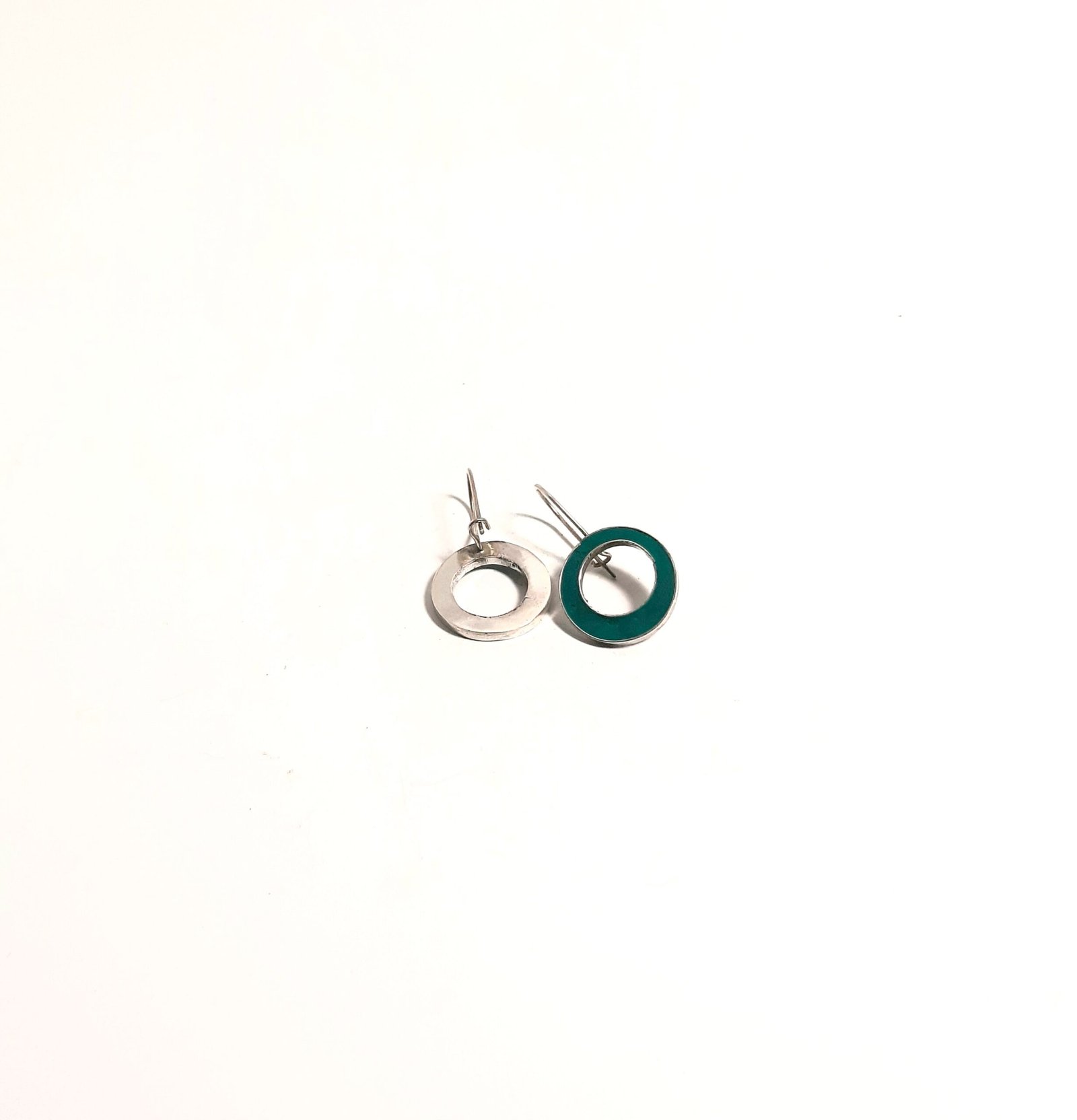 Green Hollow Round Earrings: The Elegance of Nature in Your Ears We brought together the elegance of handmade silver and the peaceful tones of green. These hollow round earrings, produced entirely by hand without using any technology, are ideal for those who love natural beauty and simplicity. Each piece is carefully shaped by our masters.