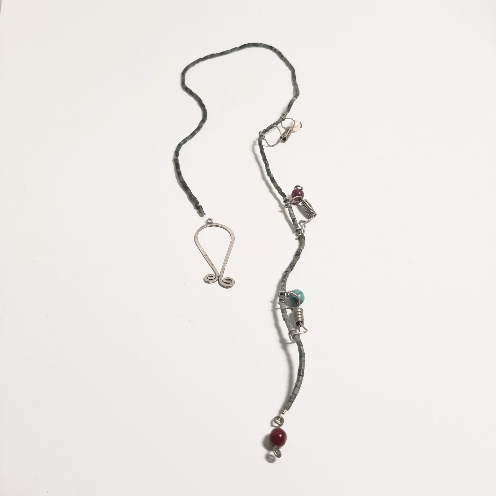 jade coral Turquoise Pearl Stone Mountaineer Necklace, made of handmade silver, brings together the beauty and art of nature. Completely handcrafted and produced without using any technology, this unique piece symbolizes elegance and naturalness. Feel special.