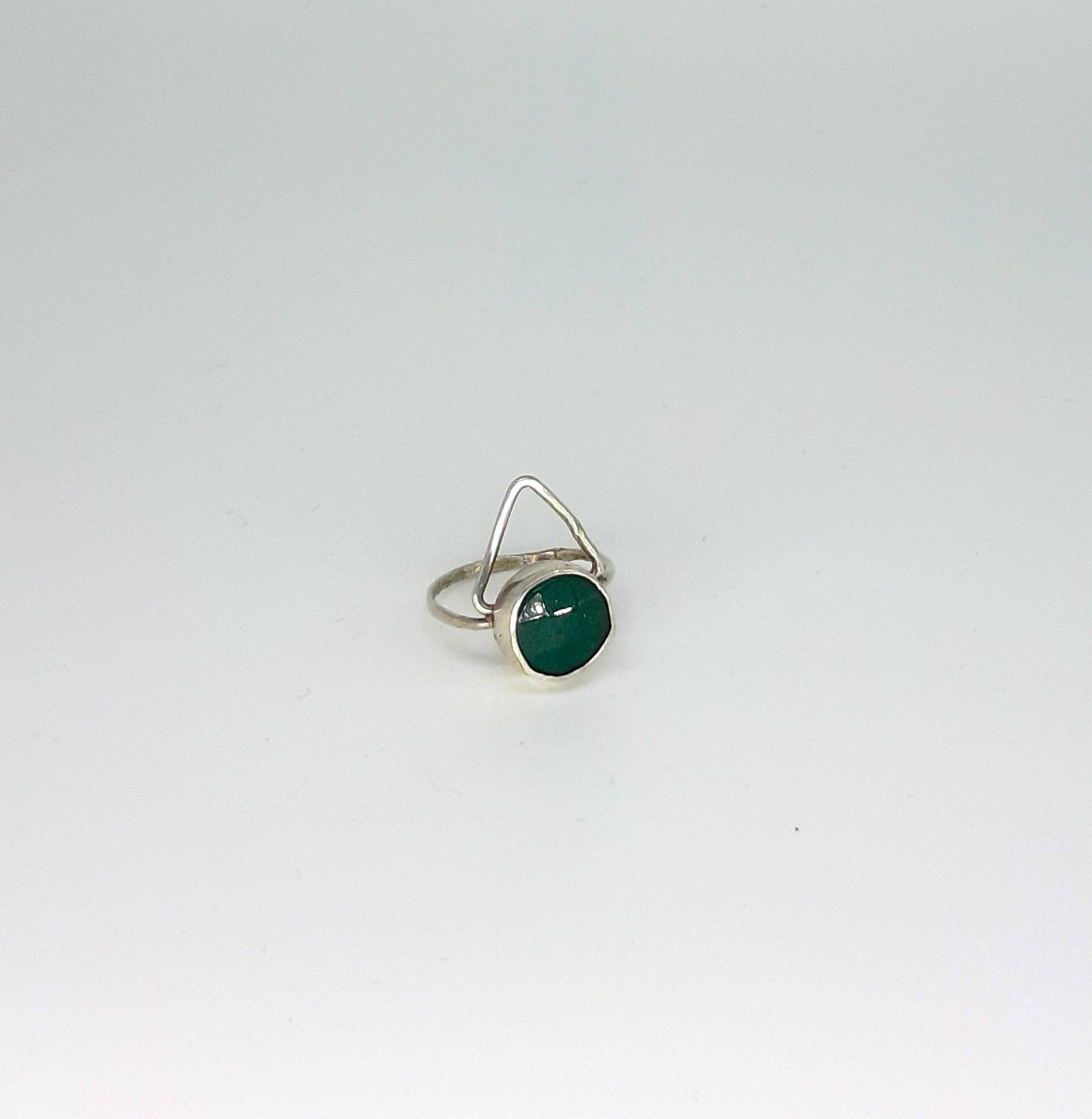 Jade Triangle Round Ring: Where Elegance and Mastery Meet Reflecting a deep appreciation of culture and craftsmanship, bringing together the natural beauty of jade and the skill of craftsmen, the Jade Triangle Round Ring tells a story on your fingers. This ring bears the touch of master hands and traces of a centuries-old tradition in every detail. While the peaceful green tones of jade shine like a drop from the heart of nature, the perfect harmony of triangular and round forms reveals a splendor hidden in simplicity.